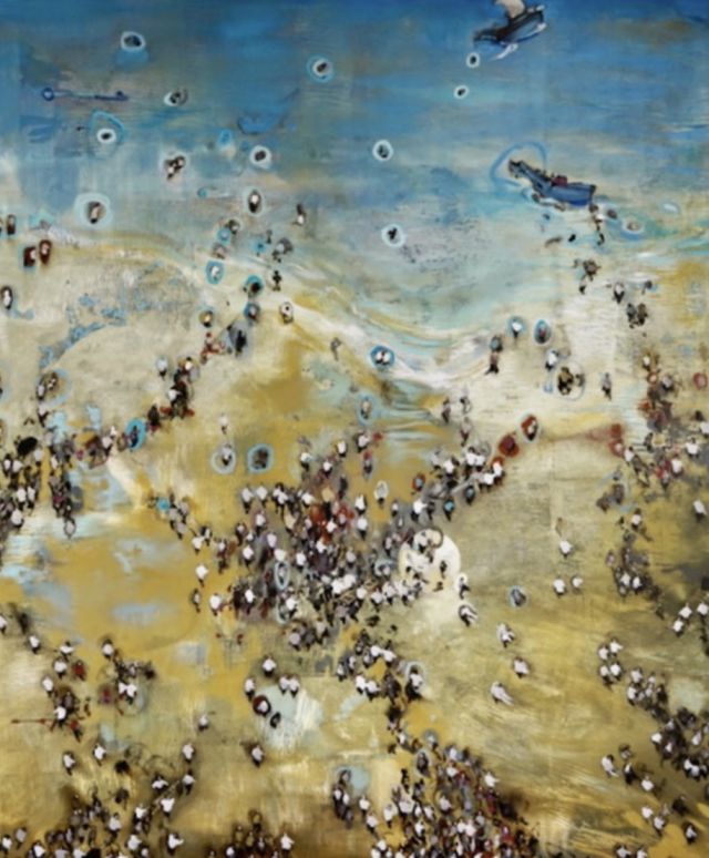 Nel corso degli anni, il punto di vista dell'artista si è spostato sempre più in una posizione alta per mostrarci il mistero della folla e del suo costante muoversi, come una marea sulle spiagge, tra la quiete sensazioni dell'assenza di ansie personali, di invidie e piccole vittorie che increspano di identiche onde il mare delle giornate di ciascuno di noi, da una parte e dall'altra il mistero di una nuova testa pensante, quella della folla appunto, che sfugge al controllo e, pur all'apparenza libera, può invece risultare di facile manipolazione, carica di forza bruta gestita con disperazione e illogicità