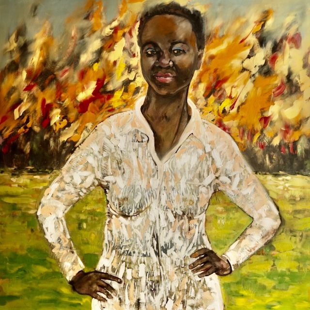 Ima Montoya, Burning down the house, oil on canvas, cm 100x100