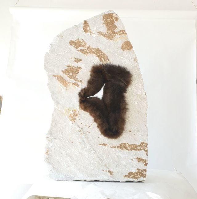 Jacopo Mandich, Soft Stone ibrido 1.1, 2023, marmo e pelliccia, cm 80x60x15