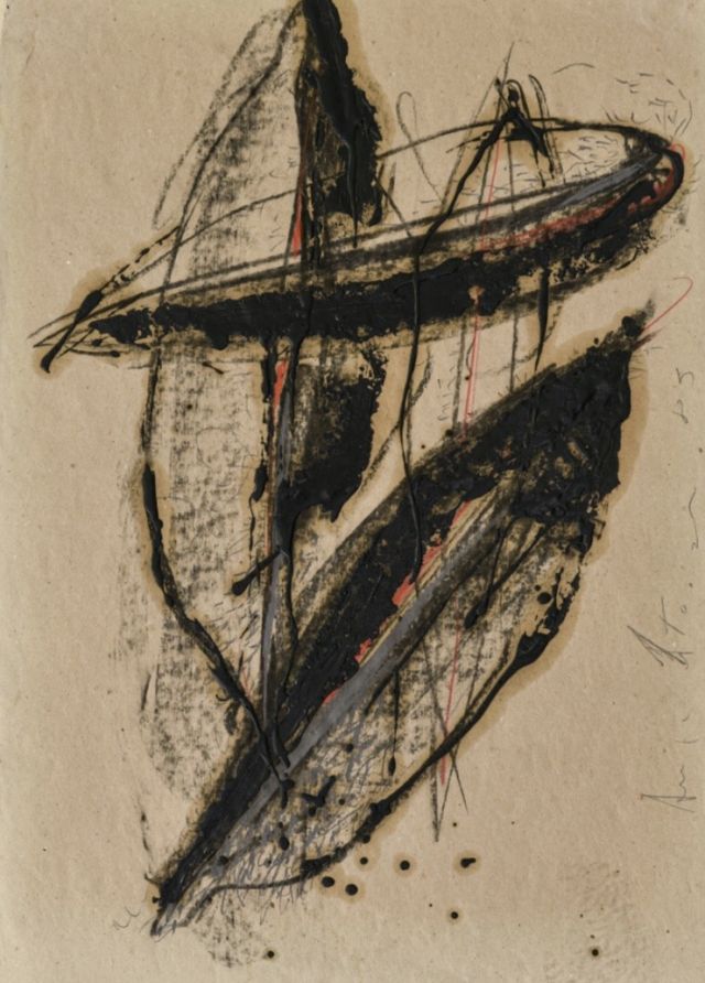 Luigi Stoisa, Le mie strade infinite - Gent, 1985, gessetto, carboncino e catrame su carta, cm 70 x 48,5