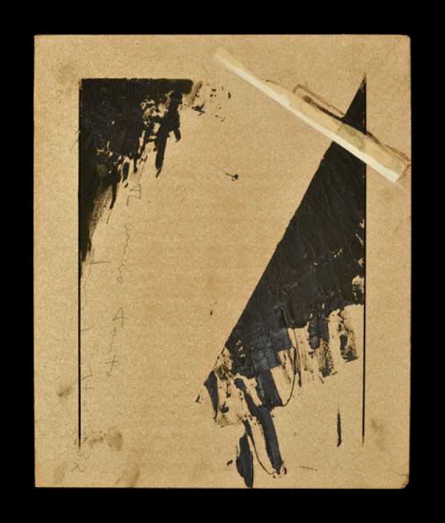 Luigi Stoisa, Pensami, 1987, pittura ad olio, bitume e carboncino su pannello in truciolato, cm 66 x 49